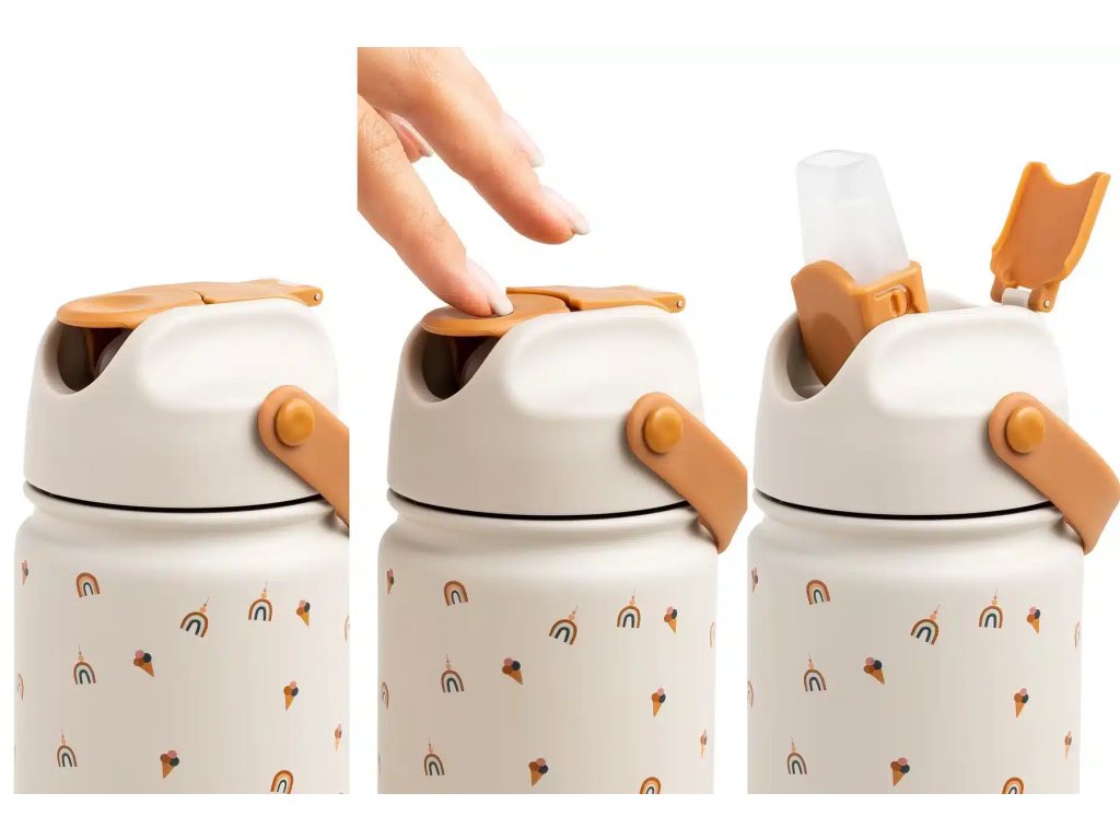 Nová a vylepšená nerezová fľaša THE COTTON CLOUD je ideálna do škôlky, školy alebo na výlety. Táto termoska s typickým vzorom THE COTTON CLOUD udrží nápoje v lete nádherne chladné a v zime teplé. Fľaša je vyrobená z odolnej, vysoko kvalitnej nehrdzavejúcej ocele 18/8, je nepriepustná pri otvorení a zatvorení. Má tiež silikónovú rukoväť pre ľahké prenášanie. Slamka je vyrobená z mäkkého a kvalitného silikónu LFGB. Jednoduché použitie: zahryznite a vypite!