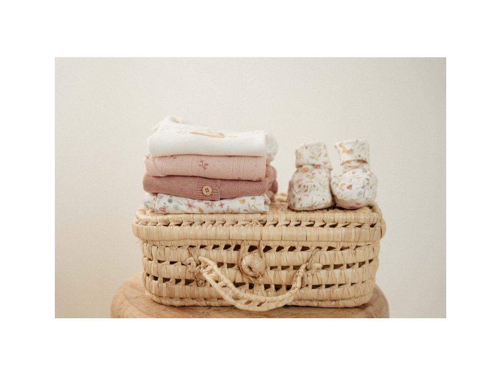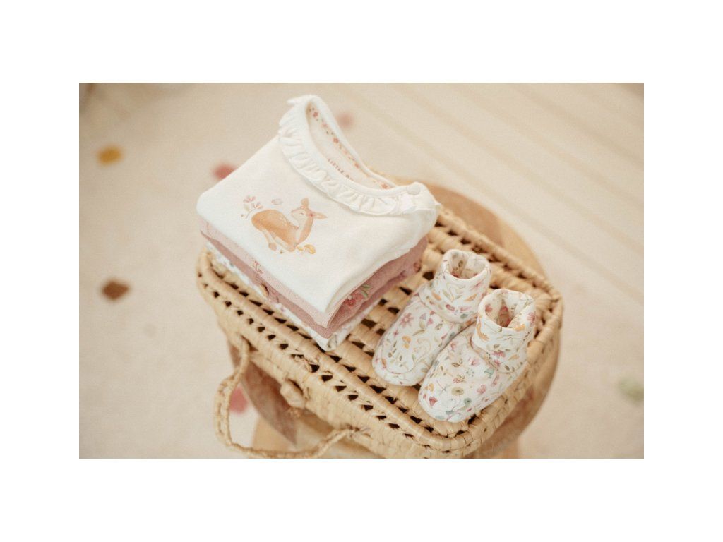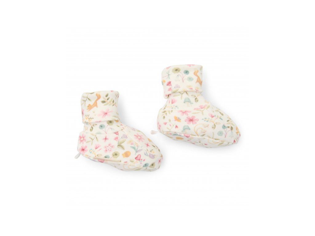 Topánočky z jemnej organickej bavlny s krásnou kvetinovou potlačou udržia nožičky vášho dieťaťa v teple a pohodlí.