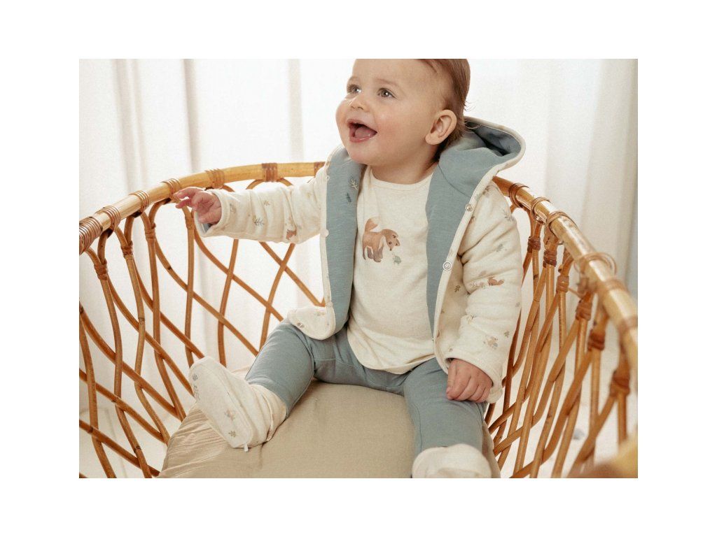 Topánočky z jemnej organickej bavlny s krásnou potlačou motívov zo života v lese udržia nožičky vášho dieťaťa v teple a pohodlí.