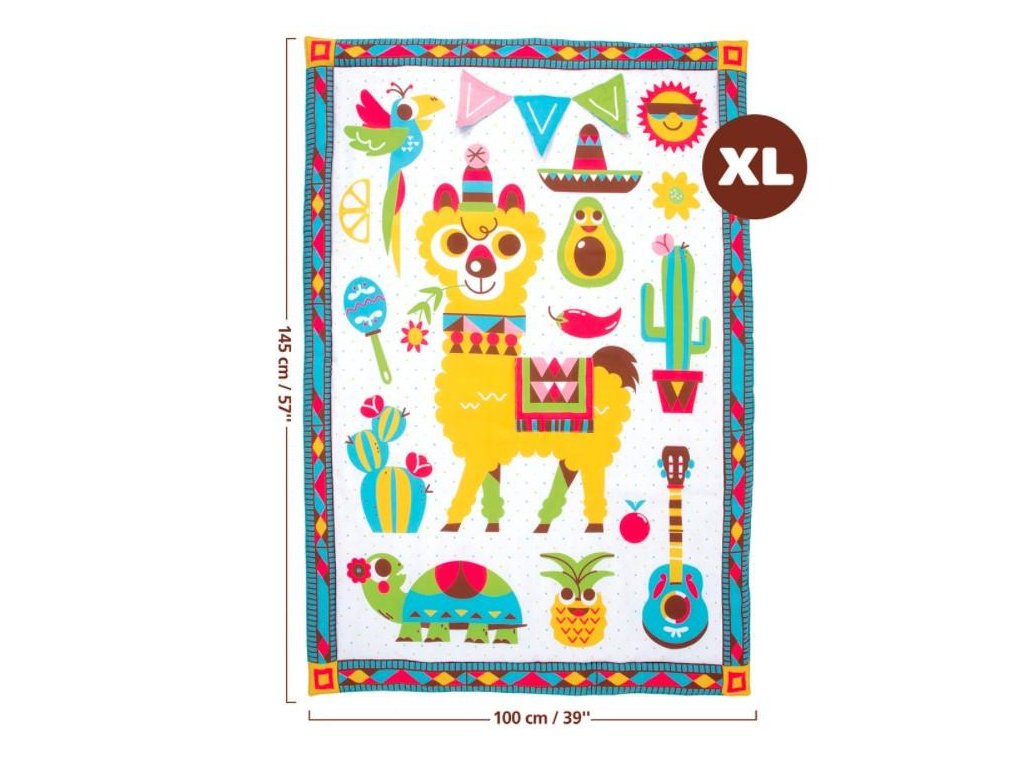 Mimoriadne priestranná hracia deka, ktorú ľahko zbalíte do tašky pre jednoduché prenášanie k vnútorným aj vonkajším aktivitám.